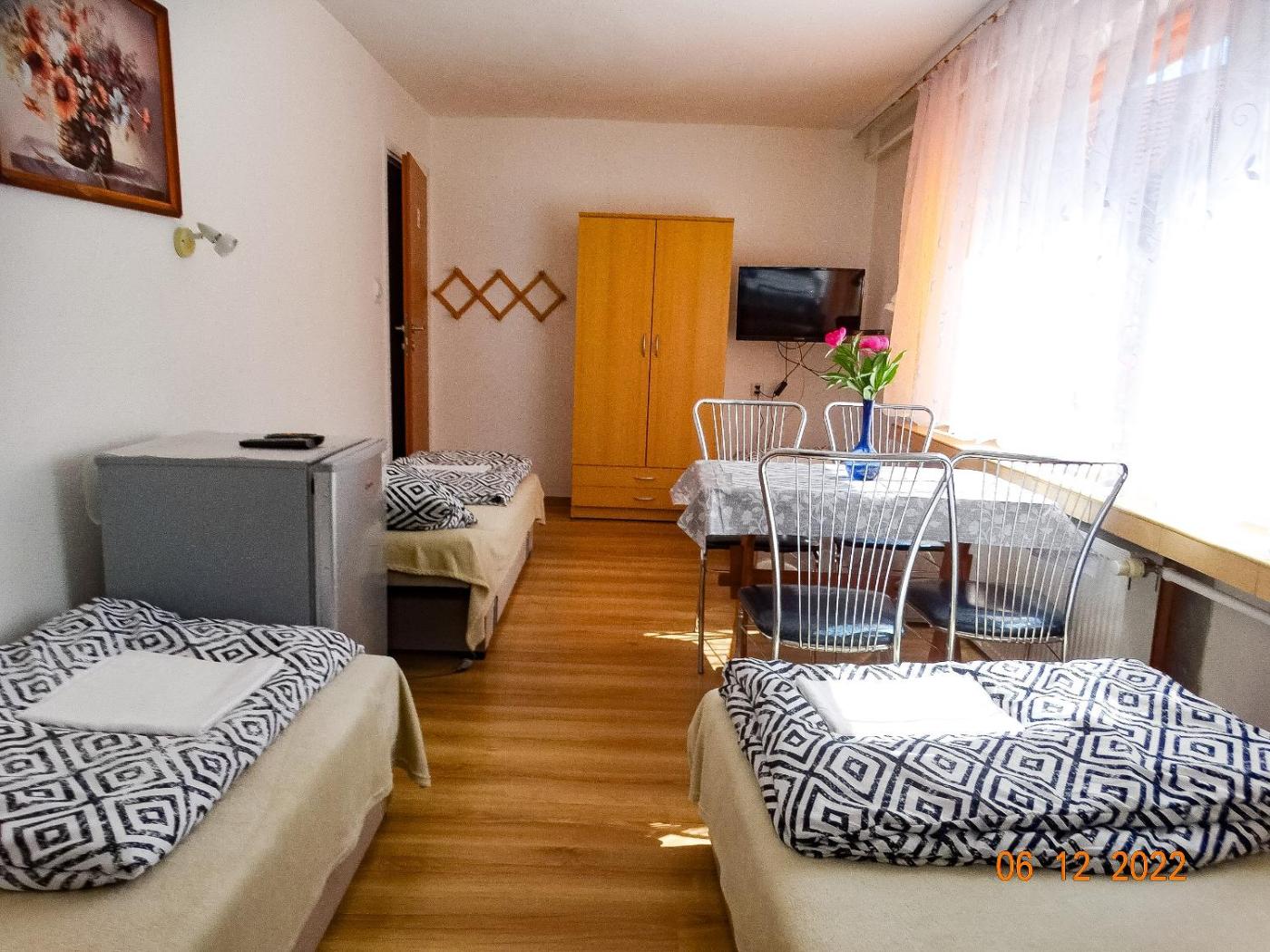 Pokój Czteroosobowy. Ten pokój z łazienką wyposażony jest w telewizor, czajnik elektryczny oraz lodówkę. Pokój Czteroosobowy - 4 osobowy. Powierzchnia pokoju ok.: 16 mkw. ;