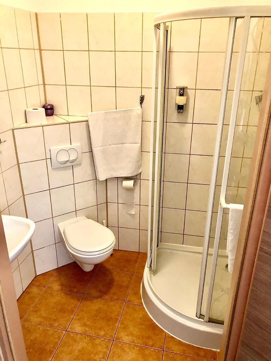 Pokój Czteroosobowy. The quadruple room offers heating, as well as a private bathroom boasting a shower. The quadruple room features a private entrance, a wardrobe, a sofa, a carpeted floor and a flat-screen TV with cable channels. The unit has 3 beds. Pokój Czteroosobowy - 4 osobowy. Powierzchnia pokoju ok.: 18 mkw.