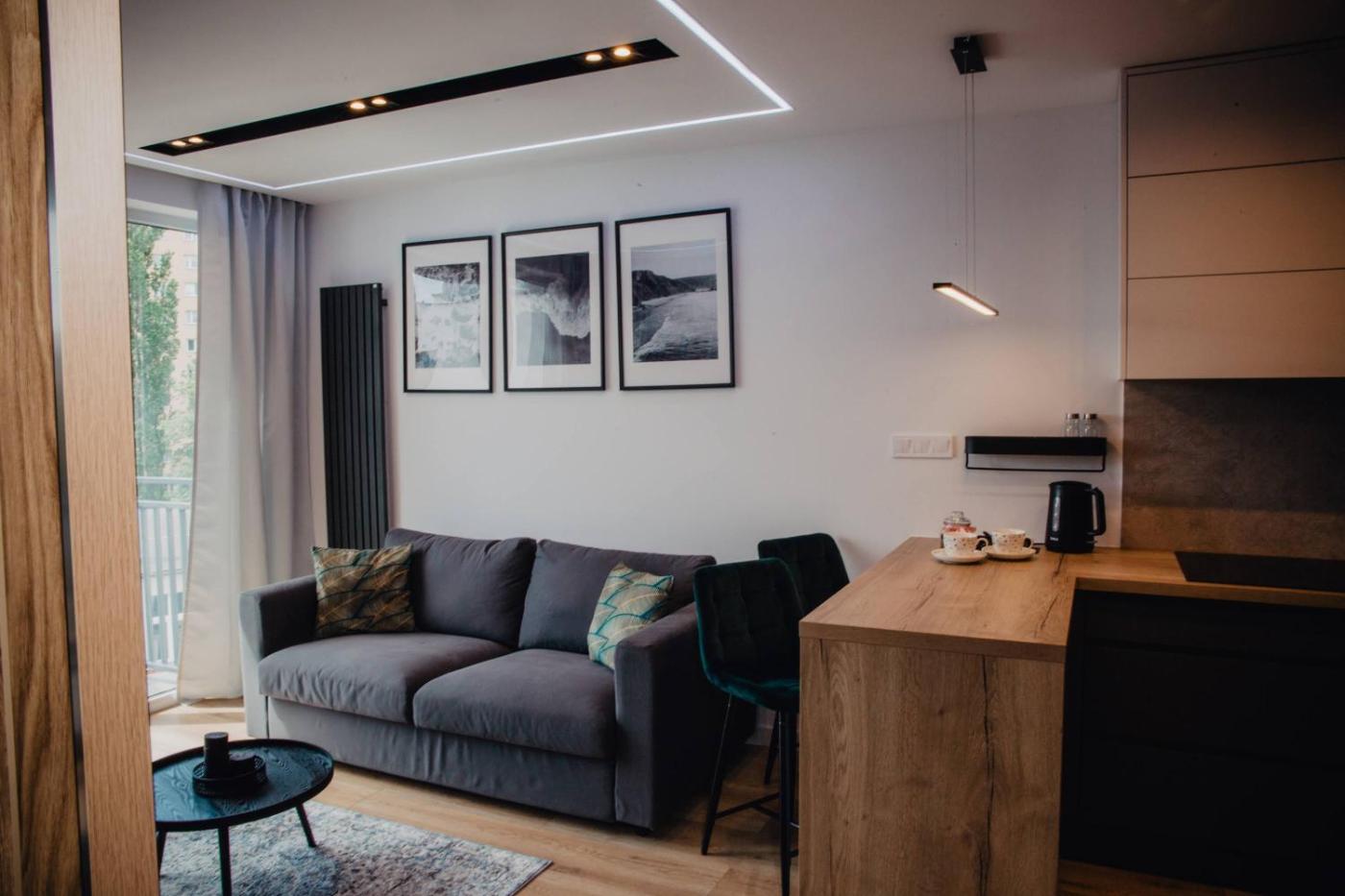 Apartament z 1 sypialnią. Guests can make meals in the kitchenette that is equipped with a stovetop, a refrigerator, a dishwasher and kitchenware. The apartment provides a washing machine, a private entrance, soundproof walls, a tea and coffee maker and a flat-screen TV. The unit offers 2 beds. Apartament - 4 osobowy. Powierzchnia pokoju ok.: 43 mkw.