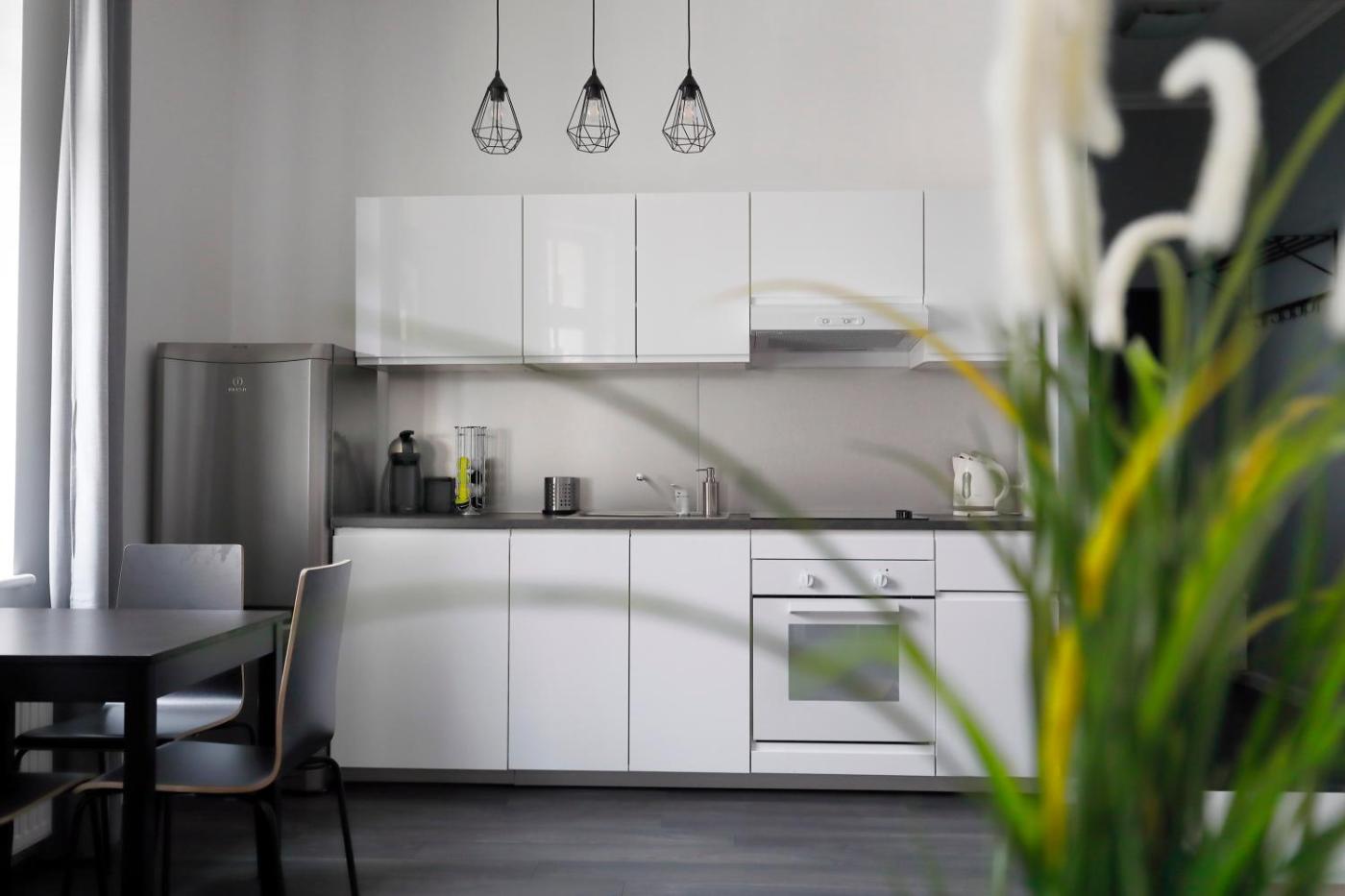 Apartament typu studio. This apartment consists of 1 living room, 1 separate bedroom and 1 bathroom with a walk-in shower and a bath. Meals can be prepared in the well-fitted kitchen, which is equipped with a stovetop, a refrigerator, kitchenware and an oven. The apartment provides a flat-screen TV with streaming services, a washing machine, a tea and coffee maker, a seating area as well as ancourtyard view. The unit offers 2 beds. Apartament - 3 osobowy. Powierzchnia pokoju ok.: 38 mkw.